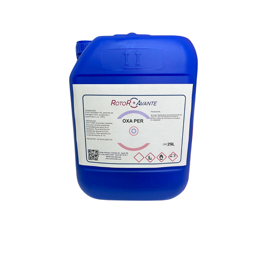 InicioIndustria alimentariaOxa Per Oxa Per Desinfectante en base ácido peracético y peróxido de hidrógeno. Gran acción limpiadora. Desinfectante, bacterias, hongos esporas y virus. No afecta al acero inoxidable. Solicitar presupuesto Categorías: Industria agrícola, Industria alimentaria Product ID: 7554 Formatos Documentación Formatos Formato 25kg Ficha técnicaHoja de seguridad Productos relacionados RL 024 Solicitar presupuesto R.L.A – 5 Solicitar presupuesto Zeus Solicitar presupuesto