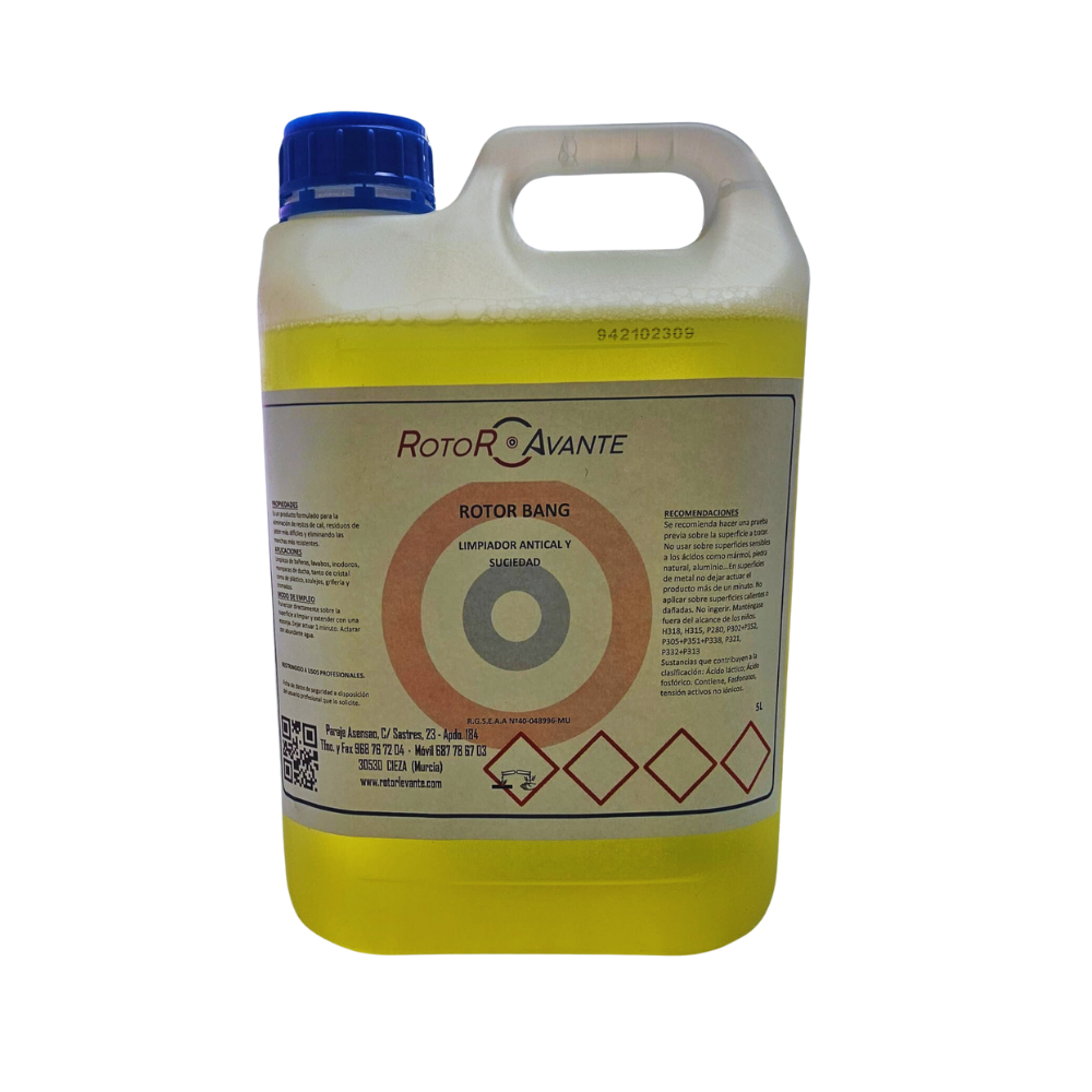 InicioIndustria hosteleraPower Bang Power Bang Limpiador antical y suciedad para eliminar restos difíciles de cal, óxido o jabón en baños, mamparas, griferías, cromados, etc. sin dañarlos. Solicitar presupuesto Categoría: Industria hostelera Product ID: 7925 Formatos Documentación Formatos Formato 5L Ficha técnicaHoja de seguridad Productos relacionados Bobinas de papel Solicitar presupuesto Rotor Xena Solicitar presupuesto Rotorplus Solicitar presupuesto
