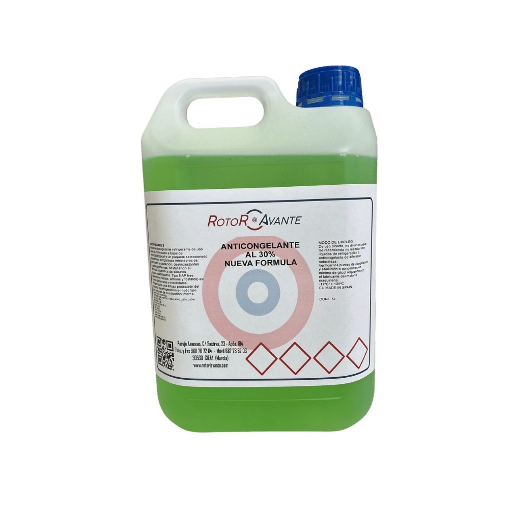 Es un anticongelante de alta eficacia formulado al 30%, diseñado para proteger los sistemas de refrigeración contra temperaturas extremas y la formación de hielo. Su acción prolongada garantiza un rendimiento óptimo y una protección duradera. Color Verde.